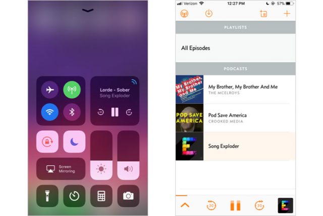 アプリの外では、プレイヤーはiOSのコントロールセンターと途切れなく統合されます。iPhoneでほかのタスクを実行する間も、一時停止やスキップ、繰り返しなどの機能を使用することができます。