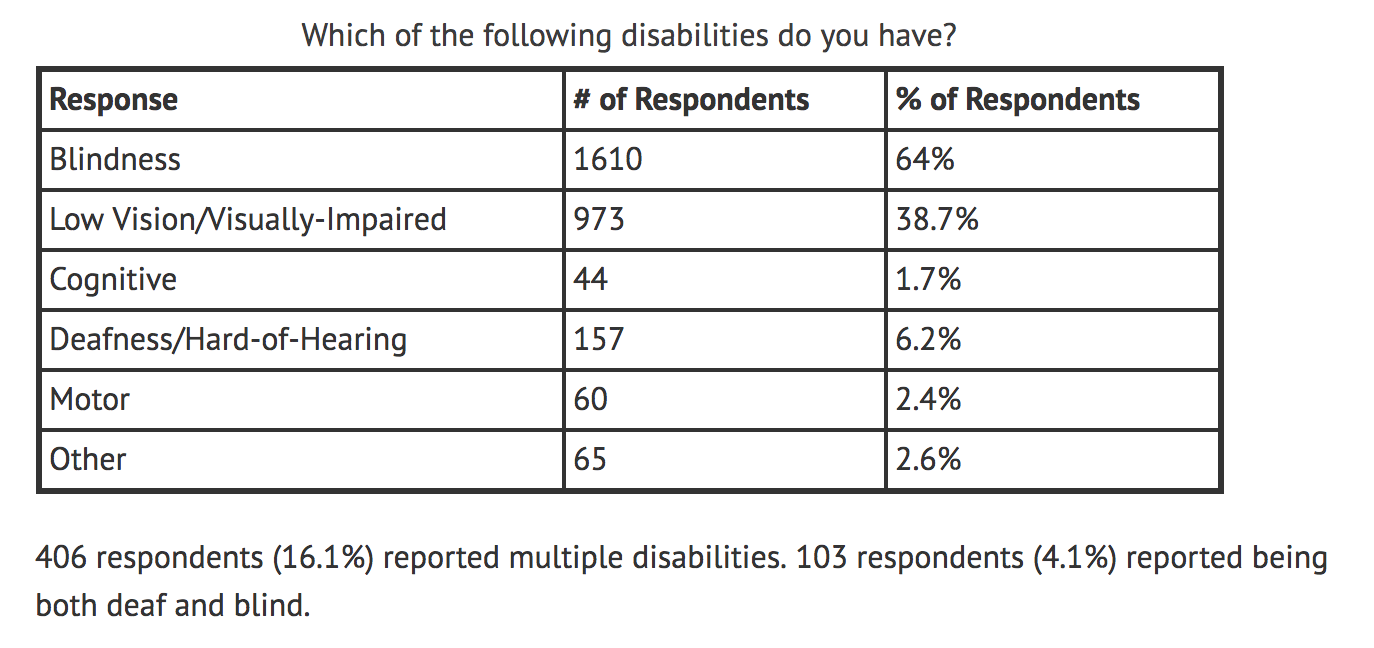 しかし、わずか2年でスクリーンリーダーとブラウザに大きな変化が起きました。 12月にリリースされた最新のWebAIMによるスクリーンリーダーに関するアンケートでは、もっとも一般的なWebブラウザとしてFirefoxがInternet Explorerを追い抜き、ユーザーの41%がFirefoxをもっともよく使用しているとわかりました。また、IEと共に使われていたスクリーンリーダーは、人気を失っています。よく利用されているスクリーンリーダーとブラウザのリストにおいて、JAWSはIEと組み合わせて使うスクリーンリーダーとして唯一残っており、まだ利用している人はいますが使用は減少しています。NVDA(FirefoxとChromeでよく使われる)やVoice Over(ChromeとSafariでよく使われる)などのツールは、JAWSに匹敵する魅力を持っています。
