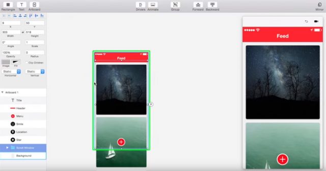 PrincipleにはPSDやSketchのファイルが簡単にインポートでき、それらの要素をアニメーションに利用できます。モバイルアプリのモックアップやWebサイトデザインに活力を与える素晴らしい方法です。