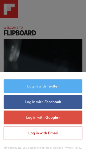 Flipboardを使用すると、ユーザーはソーシャルネットワークのアカウントを使用してログインできます。