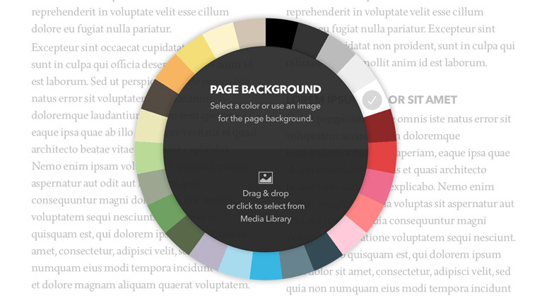 私たちは、ユーザーがどんな色でも選べるようにするのではなく、背景やテキスト、テキストの背景のためのカラーパレットを選択できるようにしました。これはつまり、私たちが上記のSlid.esの例で見たようなものをユーザーが作成しないようにしようという考えです。配色や境界線、ボタンなどは、スタイルによって予め設定されています。