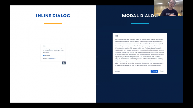 Allard氏は2つのUIコンポーネントに特に焦点を当てました。それは、インラインダイアログとモーダルダイアログです。彼はデザインシステムのための4つの重要なアドバイスとその適用の仕方について話してくれました。ここからは、彼のプレゼンテーションを要約したものを紹介します。