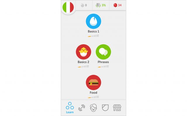 学習用アプリは、すべてのコンテンツとカテゴリーが見つけやすくてわかりやすいものである必要があります。言語学習アプリには膨大な量のコンテンツがありますが、Duolingoの場合は、メニューを隠すことなく画面の左右にうまく配置しています。その代わりに、ボトムナビゲーションメニューの5つの灰色のアイコンを置いています。アイコンは選択されると青色に変わり、その下に画面の名前が表示されます。色付けされたアイコンのみに名前を表示することで、ミニマルな画面を維持することができます。さらに、ユーザーがアプリを理解するための手助けも提供されています。Duolingoのケーススタディの記事も見てみてください。