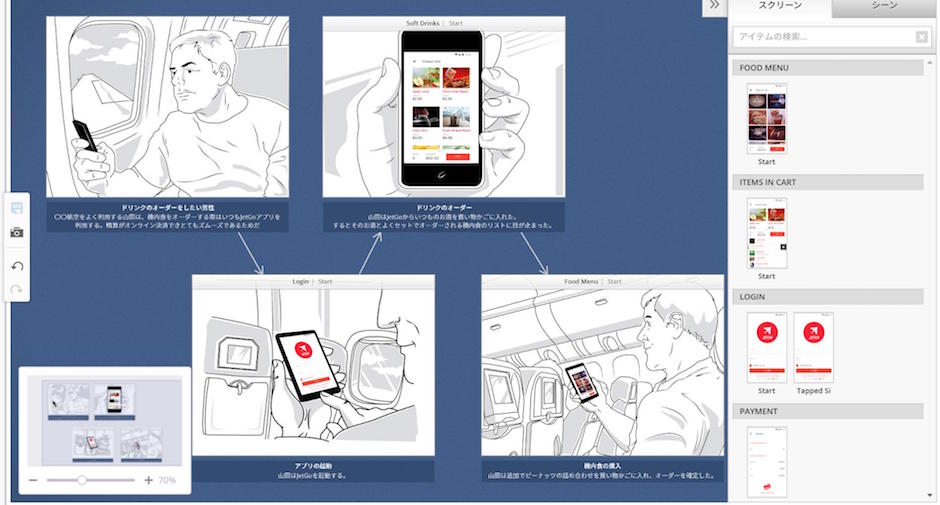 山口:ストーリーボードは、ユーザーがどのような状況やシナリオの中でそのアプリケーションを使っていて、最終的にユーザーはどのような気持ちになるのかというストーリーを描くものです。Indigo Studioには、このストーリーボードの作成機能があります。