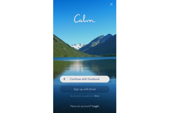 標準的な「登録する/ログインする」の画面が表示されると思っていましたが、自分の目標を選択する画面が表示されました。ここでCalmは、このプログラムを使う利点を表示しています。「自尊心の確立」から「幸せを増やす」まで、あらゆるものが提供されています。