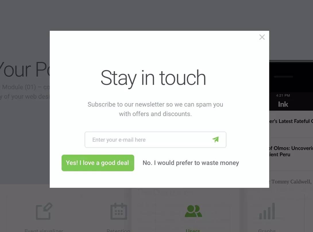 このような技術が機能しないと断言できたら良いのですが、実際には機能してしまいます。困らせ続ければ、かなりの割合の人が企業の望み通りに動くでしょう。しかし、その代償は計り知れません。1人がメルマガに登録するごとに、ほかの10人から避けられるでしょう。このような事態は、ユーザーにとってもビジネスにとっても好ましくありません。