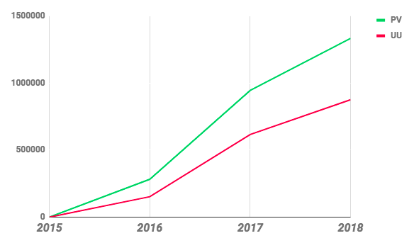 母体であるUX MILKの方は、相変わらずすくすくと育っています。ニッチなメディアですし、あまりPVなどは追わない方針なのですが、ようやくグラフを作ってもいいくらいの年数になったのでまとめてみました。