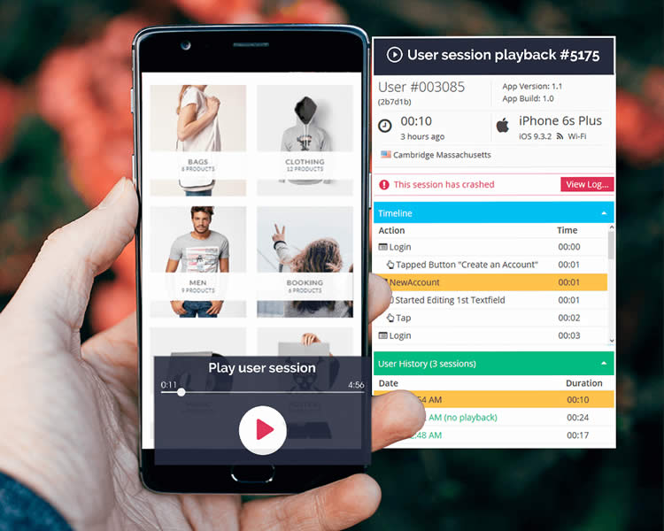 ヒント:eBayにいるような優秀な開発者は、ユーザーセッションレコーディングを使ってクラッシュの原因となったイベントを視覚的に保存し、クラッシュを再現しています。
