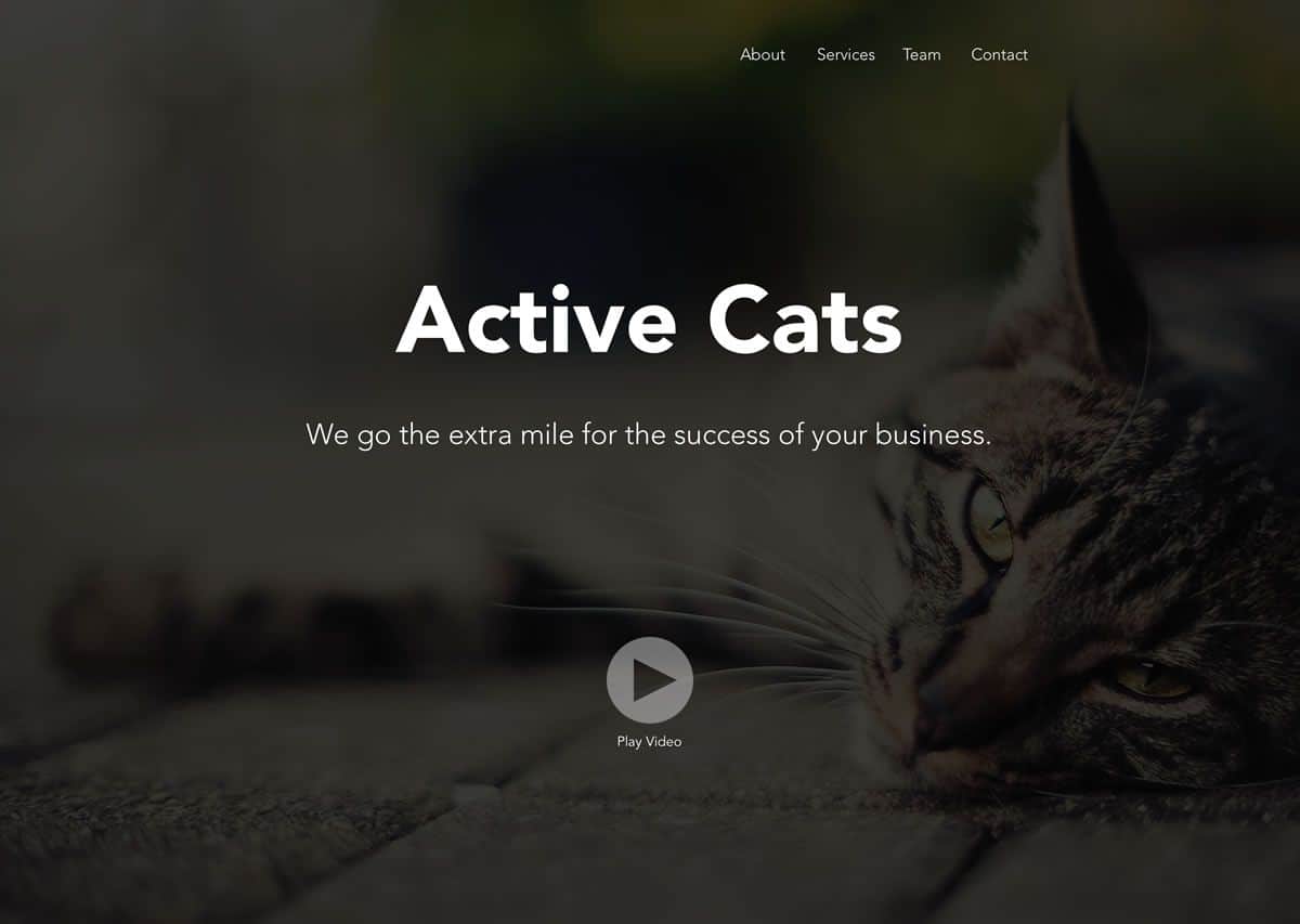 ここでは、床の上に寝転がる猫の背景写真がデザインの多くを占めています。たとえこのページで、ビジネスを成功させるためのさらなる努力を主張していたとしても、デザインからくる印象は信頼に繋がりません。このサイトからはリラックスや、曖昧さといった印象を受けます。ここではビジネスのためにさらに努力したいとの欲求は生まれません。