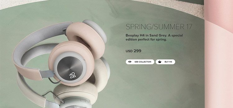 Bang and Olufsenの派生ブランドB&O Playは本家のミニマリストデザインとブランディングを引き継いでいます。このCTAはその例です。特集コレクションを見たり、洗練されたヘッドフォンの購入手続きを進めたりしながら、美しいインダストリアルデザインをたっぷり満喫できます。