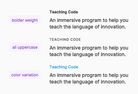 アイブロウヘッドラインはメインの見出しより短く、でも目立つ必要があります。下の図のように、テキストにさまざまな視覚的スタイルを使うことで目立たせることができます。