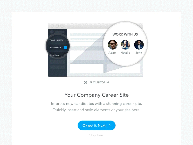 上のオンボーディングコンセプトには、たくさんのマイクロインタラクションが含まれています。ユーザーはスライドのそれぞれにある歯や舌を使って操作ができます。使用されているアニメーションによって、マイクロインタラクションの持つ効果がユーザーにわかりやすく示されています。