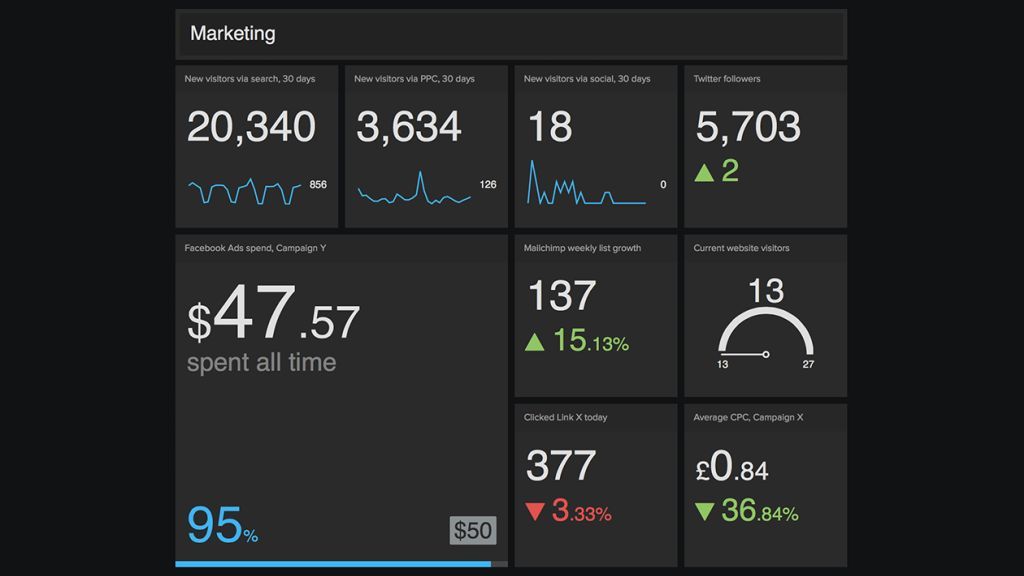 優れたダッシュボードは、綺麗に整頓されています。優れたダッシュボードには、必要のないテキストや画像はありません。余白や配列、グループ分けなどを活用して、関連する情報を視覚的につなげ、散らかりやノイズがないようにしましょう。