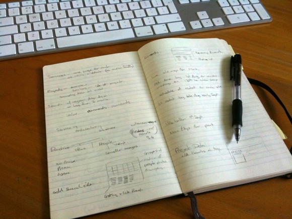 ペンと紙は常に携帯しましょう。良いアイデアを思いついたら、どのようなときも記憶に頼ってはいけません。人間の記憶は当てにならないものです。記憶の代わりに、さっとメモを取ったり、ノートパソコンに簡単なスケッチを描いたりしましょう。