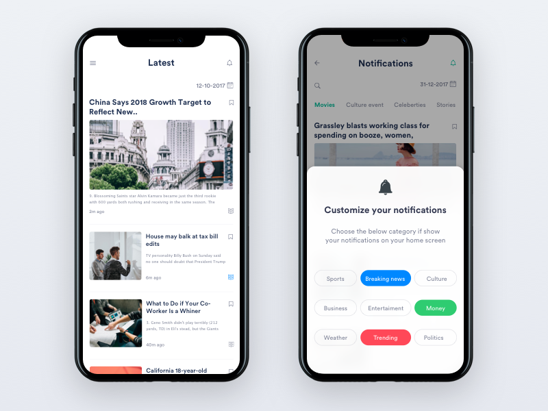 Johny vino氏のコンセプトは、ユーザーがニュースアプリで通知設定をカスタマイズする方法を示しています。ユーザーに通知設定の権限がある場合、自分のニーズに合わせて設定を変えられます。その結果、ユーザーは興味のある情報を受け取る可能性が高くなります。