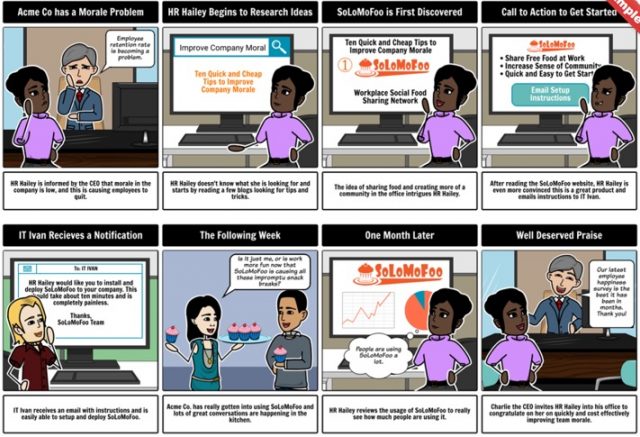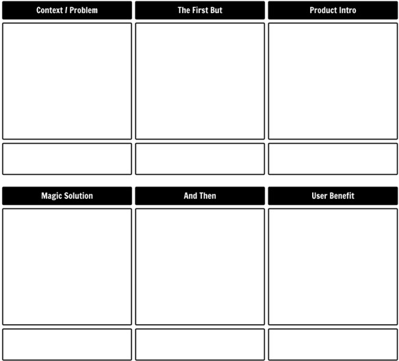 これらの質問を念頭に置いて、いよいよ作成し始めましょう。最初からストーリーボードを作り上げてもいいですし、以下のような既存のテンプレートを使って始めるのもいいでしょう。さまざまなアイデアを試し、部署の垣根を超えて同僚と議論しましょう。