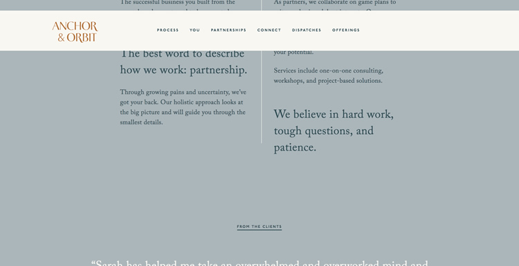 Ocean Schoolは新しいセクションごとにナビゲーションバーを変更させる代わりに、下にスクロールし始めるとすぐに、ナビゲーションバーを白い背景の中に溶け込ませます。そうすれば、ナビゲーションバーとコンテンツの間に不一致が生じることはありません。