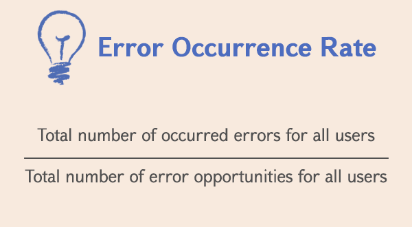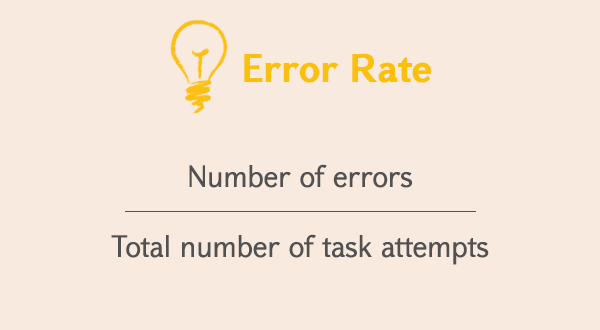1. そのタスクにエラーが起こる機会が1つしかないか、あるいは多くの機会があるけれどもその中の1つだけを追跡したい場合、たとえばパスワードのフィールドでは、エラー率の計算は次のようになります。