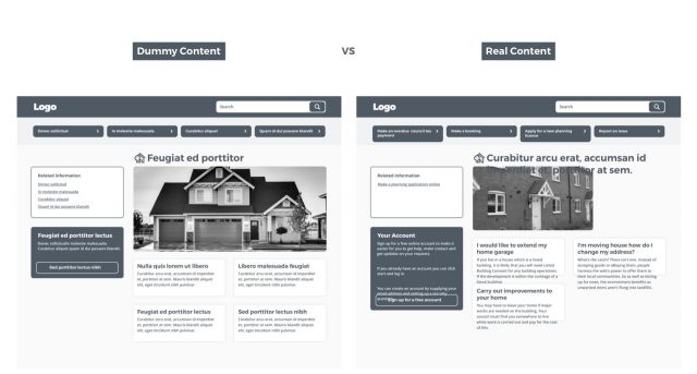 コンテンツ制作に要する時間とリソースが少なく見積もられ、コンテンツがプロジェクトの終盤まで手つかずになることが多々あります。その結果、未制作のコンテンツを補うためにリソースを割くことになりがちです。Lorem IspumやPlaceholderのようなWebサイトでは、ダミーテキストやコンテンツのないデザインの画像を制作できます。これらは美しいデザインを作成するのには役立ちますが、実際のコンテンツを配置すると上手く機能しない恐れがあります。デジタルデザイン代理店thoughtbotのチーフデザインオフィサーであるKyle Fiedler氏は、「デザインにLorem Ispumを追加すると、サイズも知らないのに王様を着飾るようなことになる」と発言しています。