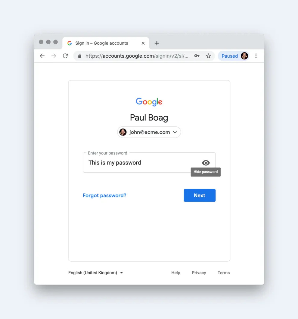 Webサイトやアプリ、システムへのログインという簡単な例を見てみましょう。UXデザイナーとして、私たちはそのプロセスをもっと楽にしようと懸命に戦ってきました。ユーザーにパスワードを表示して、パスワードを復旧させるプロセスをスムーズにしています。たとえ相手が情報システム部門であっても、彼らがセキュリティ上の理由から要求する複雑なパスワードは、常に必要なものとは限らないということを説得してきました。