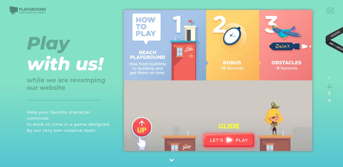 Playgroundは、潜在顧客と接触し続けて興味を保ったまま、どのように公式サイトを修正するべきかを示す素晴らしい事例です。開発チームは、ありきたりなComing Soonのページを陽気で快適な遊び場に変えました。