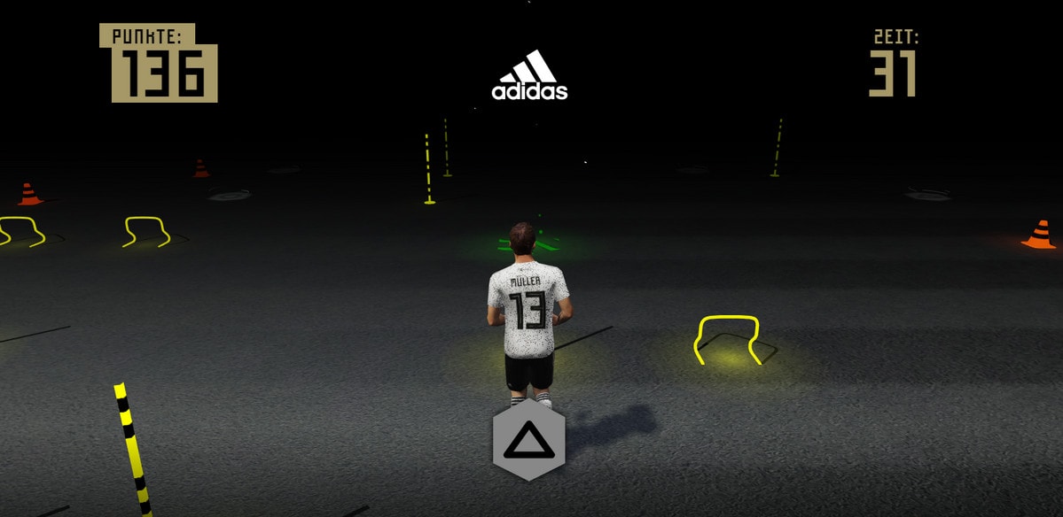 たとえば、Adidasのような多国籍のスポーツ用品メーカーを考えてみましょう。彼らはよくWebサイトのゲームを使って何百万人というファンを満足させています。直近ではAdidas DFB Jerseyというゲームを公開しました。これは2018年のFIFAワールドカップでドイツ代表のチームグッズを販促するために作られた、WebGLで動作するモバイルゲームです。ユーザーはキーボードを使ってプレイヤーを操作し、フィールド上に置かれた障害物を回避します。