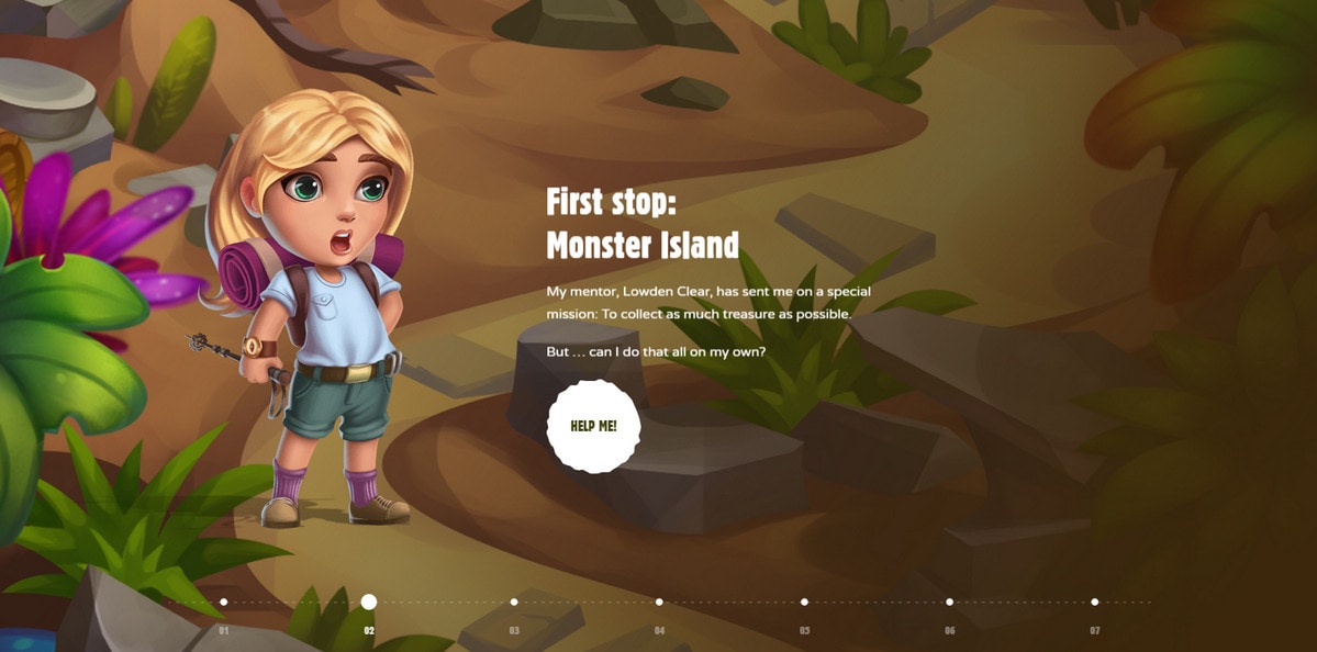 新しいプロダクトをリリースする準備として小さなプロモーションサイトを作る欲求に駆られるもう1つの業界が、ゲーム業界です。このような宣伝は過剰に見えるかもしれませんが、このゲームには効果があります。加えて、ゲーム業界において「やり過ぎ」という言葉はありません。たとえば、Dee Zaster on Monster IslandやTerraformaが挙げられます。これらは異なる種類のゲーム体験です。前者が細部まで感傷的な古典的アドベンチャーゲームであるのに対し、後者は謎めいていて興味が尽きない破滅的な未来にユーザーを誘います。