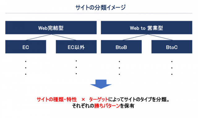 このようにユーザー像が明らかになると「競合との違いが説明できるようになってもらう」というようにWebサイトの目的も明確にできますし、「競合との比較ページを閲覧した状態」をコンバージョンとして定義することもできます。