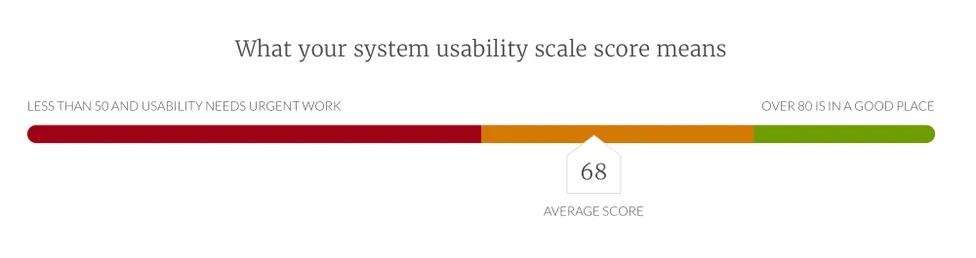 SUSの平均は68であり、80を超える点数は非常に優れていることを意味します。50未満の場合は、ユーザビリティの修正を優先すべきでしょう。