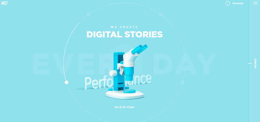 MST Agencyのチームは、単色をただレイヤーや背景に使用するのではなく、ページ全体に適用することでサイトを訪れる人に強い印象を与えています。Webサイトのウェルカムページでは、おなじみのスライダーで訪問者を出迎えます。各スライドは、それぞれ単色のテーマカラーで全体をまとめる構成となっています。