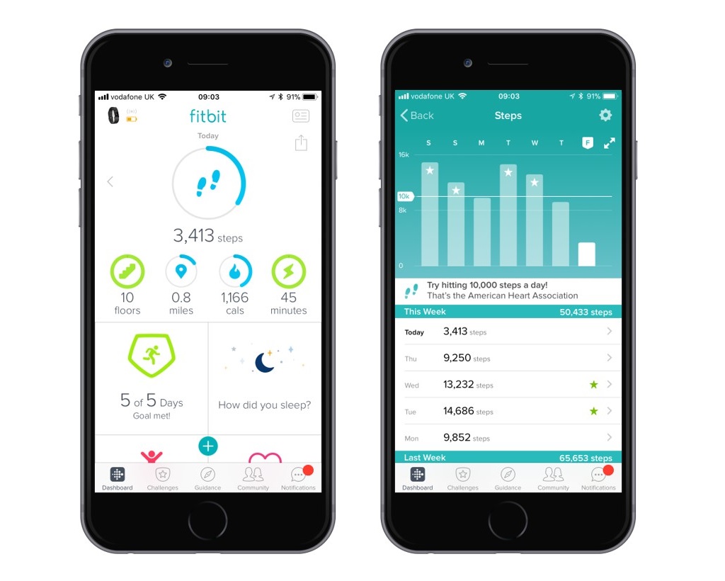 ユーザーが目標を設定したとき、達成状況が確認できる機能があることは重要です。Fitbitは歩いた歩数、消費したカロリーなどを画面に表示し、また、日ごとや週ごとのダッシュボードやレポートを提供して、ユーザーが達成状況を確認できるようになっています。