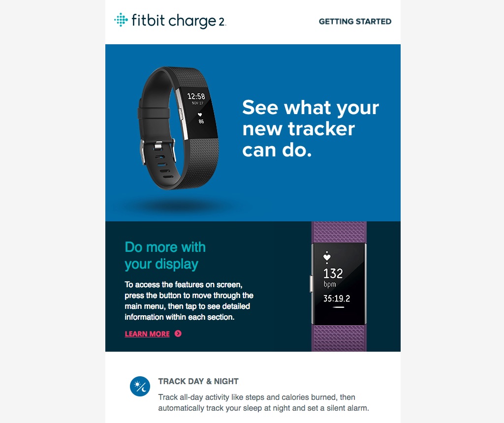 Fitbitはゲームのルールをとても上手に解説しています。基本機能とコンセプトについて説明が書かれたマニュアルがデバイスと一緒に入っており、すぐに使い始めることができます。携帯アプリ内ではセットアップ方法の一連を紹介しており、定期的に送られるメールは、入門レベルの内容から、時間が経つにつれ、徐々にユーザーに考えさせる内容にレベルアップしていきます。