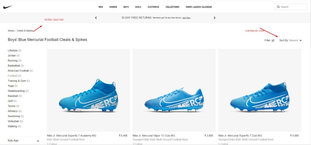 人間の記憶は限りがあります。特に短期間の情報を保存しています。Nikeはフィルターを使用して、すべての重要なページの情報を保持することにより、必要な思い出す情報の量を制限します。小売業者は、ユーザーが購入するまでの過程でユーザーに情報を提供することが重要であることを十分に認識しています。