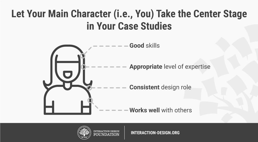 また、すべてのUXケーススタディを通して、プロットには共通性が必要です。これにより、ポートフォリオはまとまりのあるメッセージを伝えることができます。たとえば、UXリサーチャーを目指す場合には、すべてのケーススタディにUXに関するリサーチの経歴を含めるべきです。この共通性が欠けている場合、採用担当者に一貫性のないメッセージを届けることになり、あなたが希望するポジションでの仕事に適した人材かどうか判断が難しくなるのです。