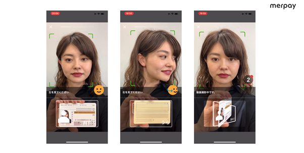 下の写真のように免許証を手に持ち顔を同時に写しながら、指示に従って顔を動かしたり、免許証自体を動かしたりしていただくことで本人確認の精度を高めるもので、この機能は日本で初めてメルペイがリリースしました。