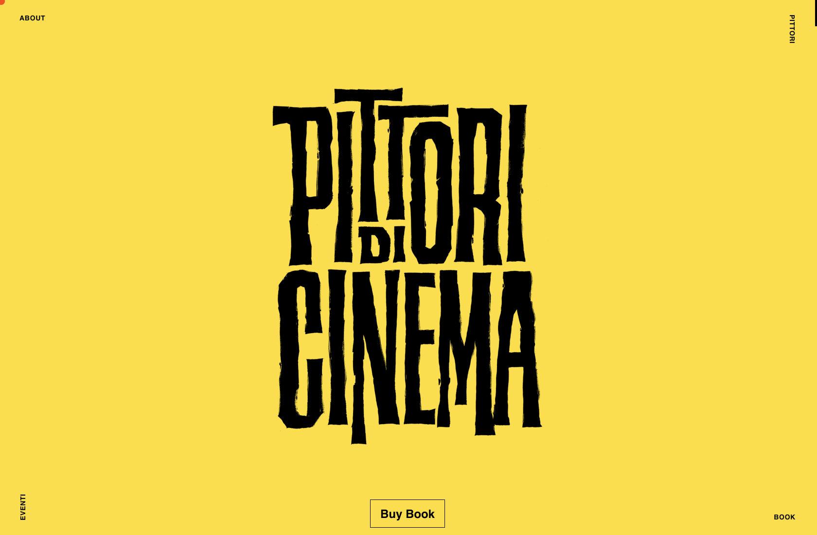 Pittori di CinemaのWebサイトはトップページに3色のパレットを使っています。カーソルが赤色、背景が黄色、文字が黒色です。