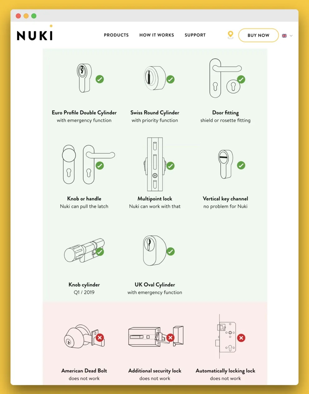 互換性もまた、よくある大問題です。スマートロックはそのよい例です。特定のスマートロックがあなたのドアに合うかを調べるのはほぼ不可能です。また、多くのアメリカ製のロックがヨーロッパで(ヨーロッパ基準に準拠していないにもかかわらず)販売されているのです。