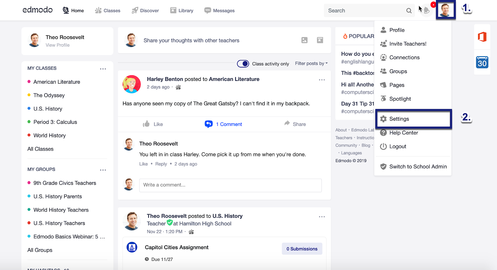 こちらは教育SNSのEdmodoのスクリーンショットです。Facebookのレイアウトを模倣しており、ほぼそのままとなっています。生徒はFacebookと同じ位置にあるボタンをクリックすることで「いいね」や投稿のシェアができますし、設定やメニューも同じ場所となっています。メンタルモデルに頼った結果、Edmodoは人気のプラットフォームとなったのです。