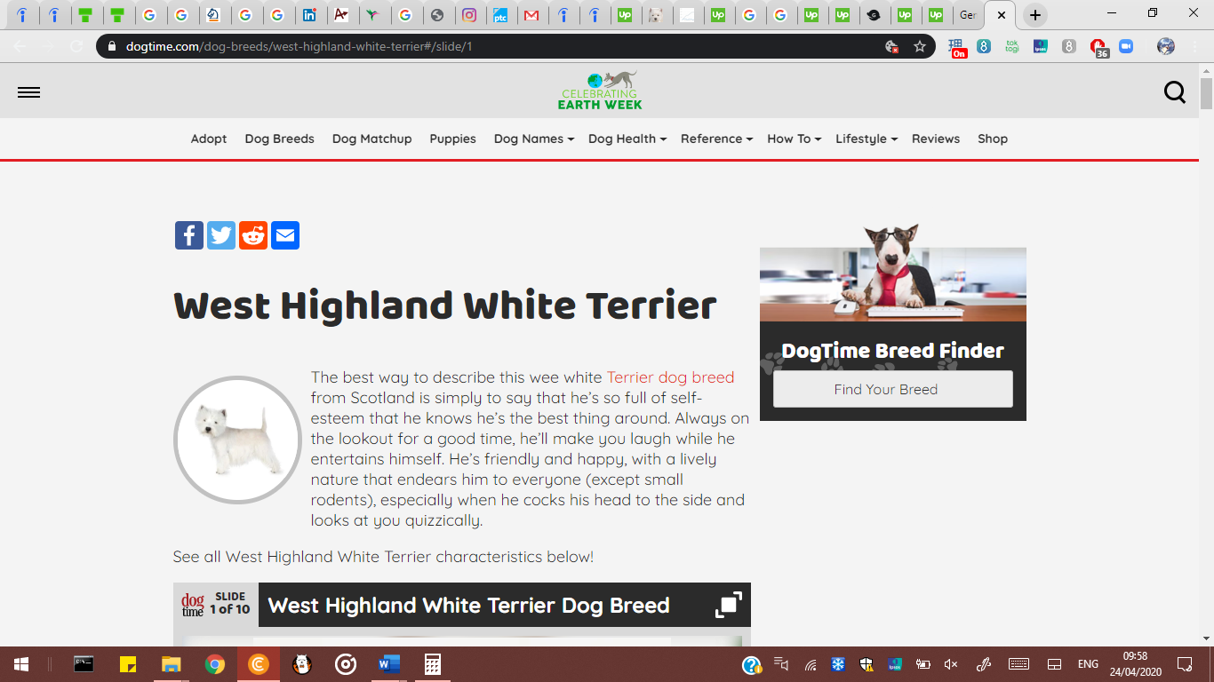 Dogtimeのこちらのブログポストはミラーの法則をよく活かしています。SNSシェアボタンとギャラリー、画像、パラグラフでひとつにまとめられており、4つで1グループとなっています。右のBreed Finderについては欄外に隔てられています。そうすることでユーザーはそこまで気が散ることもありません。