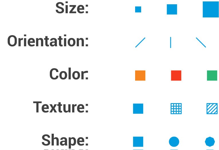 - サイズ:点、面、ボリュームのサイズであり、重要性や重みの情報を伝えます。