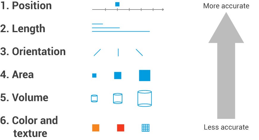 Cleveland氏とMcGill氏は、彼らが発表した『Graphical perception: Theory, experimentation, and application to the development of graphical methods』の中で、グラフの特性の中には、情報を伝えるに当たって他のものよりも効果的なものがあることを示しました。