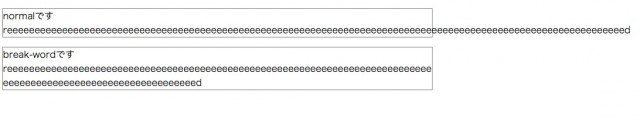 normalはデフォルトで、単語の途中では折り返しません。break-wordを指定すると、単語の途中でも強制的に折り返して、文章がはみ出さなくなります。
