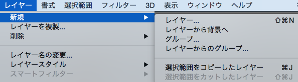 背景レイヤーを追加するには、まず背景レイヤーに変換したいレイヤーを、レイヤーパネルから選択しておきます。その状態で、一番上にあるメニューバーのレイヤーから新規→レイヤーから背景へを選択してください。