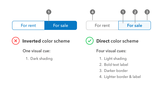 すべてのボタンがアクションを実行するわけではありません。たとえばトグルボタンなどは、アプリの状態を変えるために使われます。1つのコントロールで複数の機能をもつので、UIのスペースを節約することができます。トグルボタンは押すと状態が瞬時に切り替わりますが、それ故に正しく設計しないと問題が発生します。 反転したカラースキーム vs 通常のカラースキーム トグルボタンの課題は、現在の状態をいかに明らかに……