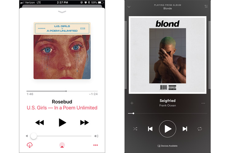 SpotifyとApple Music、2つの大手音楽ストリーミングサービスはどちらも熱心なファンを抱えており、長年競争関係にあることが語られてきました。この2つのプラットフォームに関してはかかる費用やライブラリ、機能リストについてを比較した無数の記事やインフォグラフィックが既に書かれています。そのため、私たちはこれらの指標を2社の評価に使いません。代わりに、純粋にUXの観点から比較します。つまり……