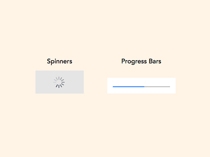 お店で誰かに商品の場所を尋ねたとして、その相手がただそこに立ったままだったとしたらどう思うでしょうか。きっとイライラして、その場を立ち去りますよね。同じように、ユーザーは長い間スクリーン上のスピナー(通信やローディング時にくるくる回るアニメーション表示の)を見ていると、このような心理状況に陥ります。 スピナーは時間のかかる処理には適さない スピナーは、その処理が終わるまでどのくらいの時間を要するの……