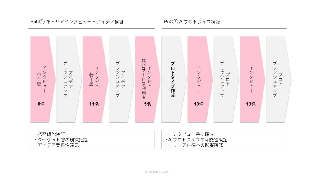 PoC(アイデアの実現可能性を確かめる工程)を2回実施した際のプロセス